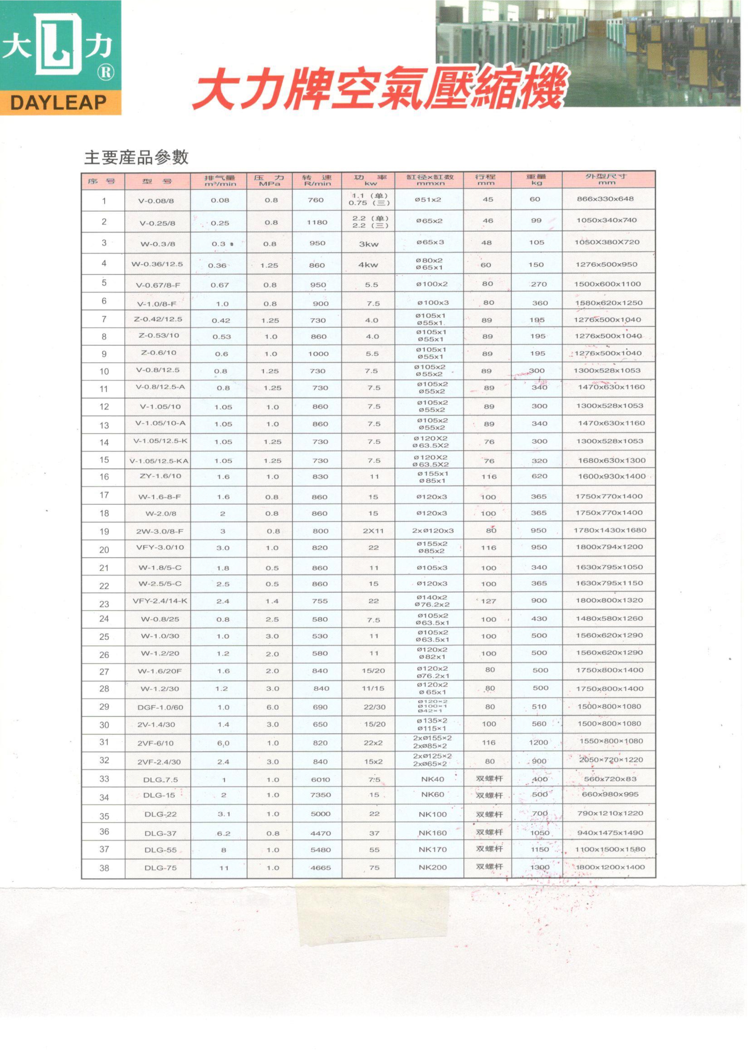 大力牌活塞式空压机