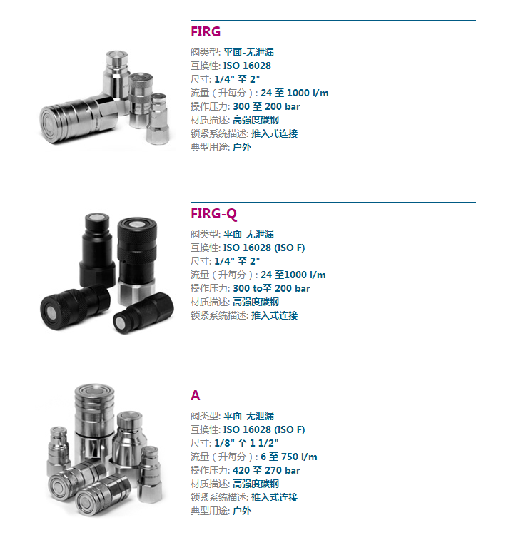 平面密封液压快速接头