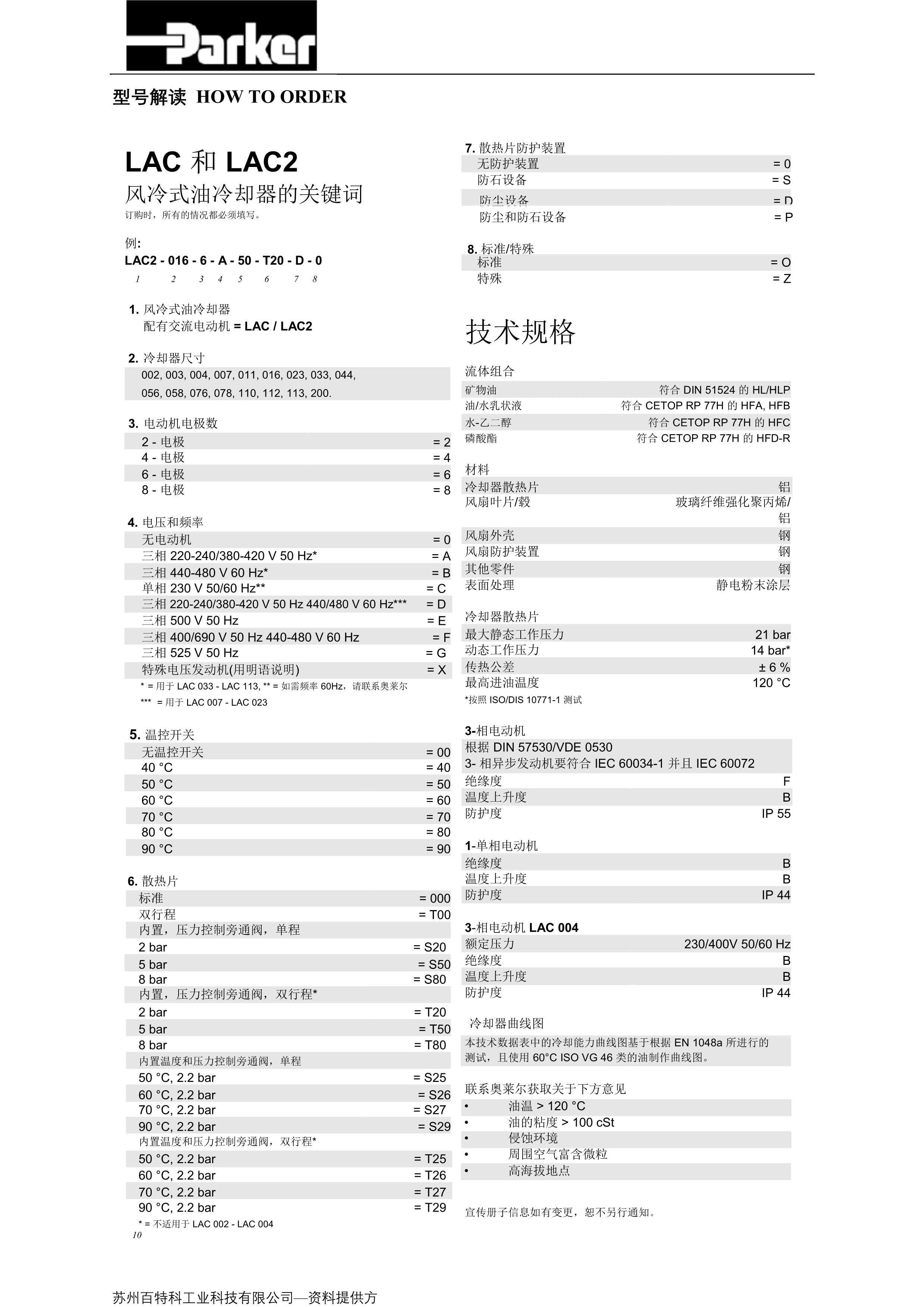 Parker 冷却器配件