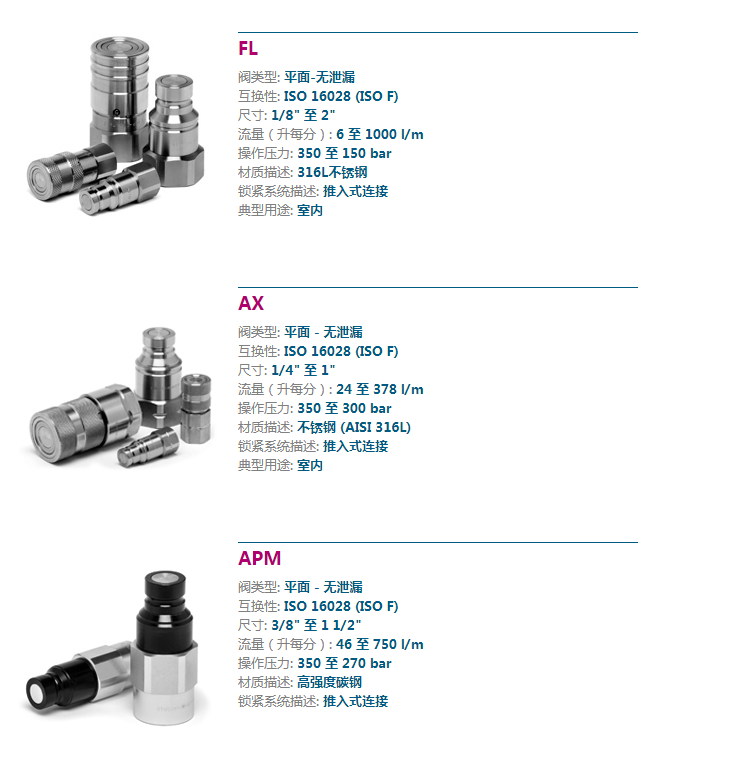 平面密封液压快速接头